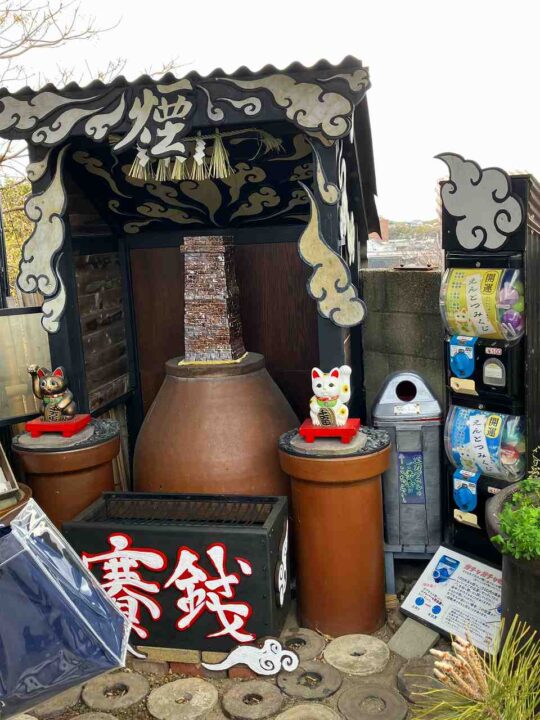高く伸びる焼き物の煙突を御神体にした、小さな神社。人生をリセットできるらしい、という噂がこの町らしい軽やかさ。見上げると、空が近い。願いは重くなくていい。深呼吸ひとつで十分。