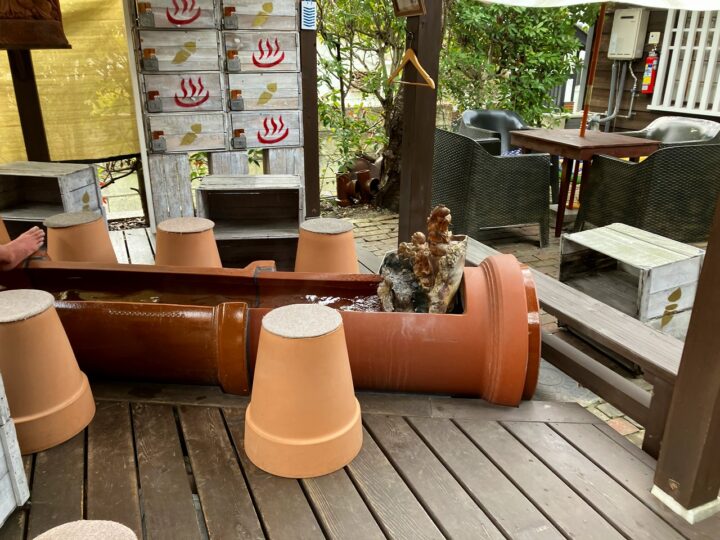 土管を生かした足湯。発想がやさしい。土の器に身を預ける時間。