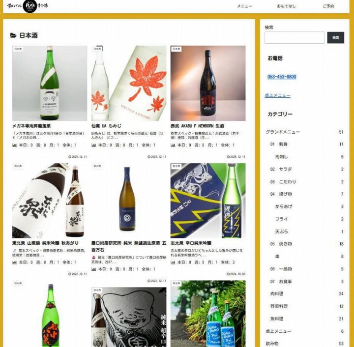 日本酒。焼酎。ワイン。それぞれの酒にも、詳細ページが用意されている。